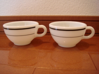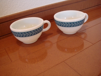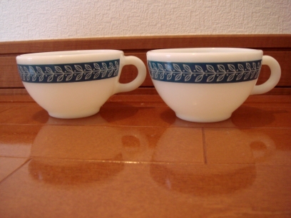 オールドパイレックスブルーリーフマグペアです。