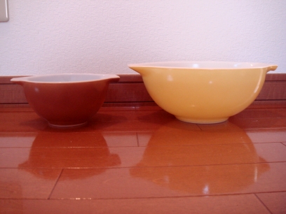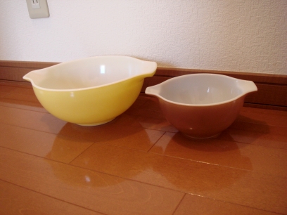 オールドパイレックス 黄と茶のボールセットペアになります。