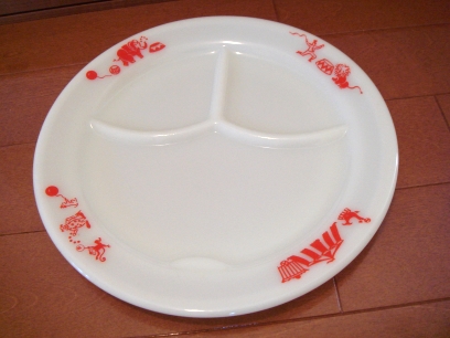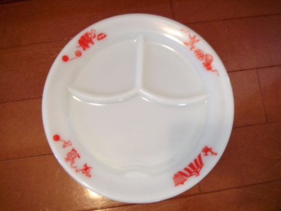 オールドパイレックスレッドサーカス3コンパーメントプレートです。