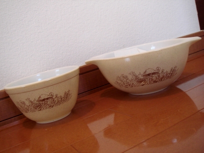 オールドパイレックスマッシュルームボール中小ペアです。